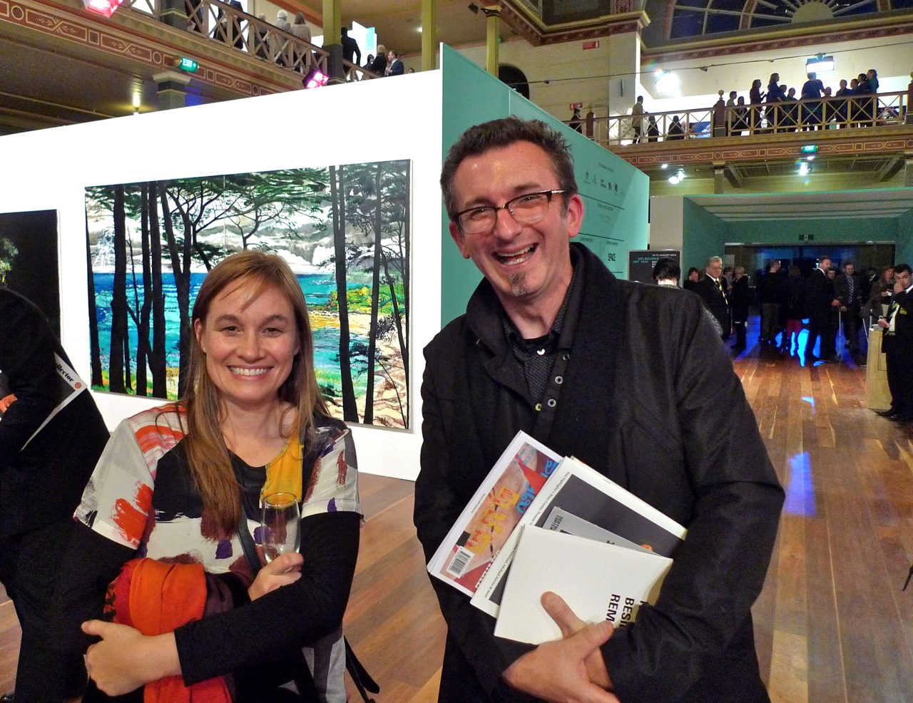 Artist and Party go together like scampi and chips, like beer and prawns. The coiffured Artists sashayed round the impressive Exhibition Building interiors, supping on fine wines and champagne. Resembling an Easter Egg hunt, they attempted to speed date their way into a meaningful relationship with a collector or two. A few cheeky rascals were seen to be trying to blag their way onto the exclusive Collector Tour Bus. Network their way out of a Centrelink queue.