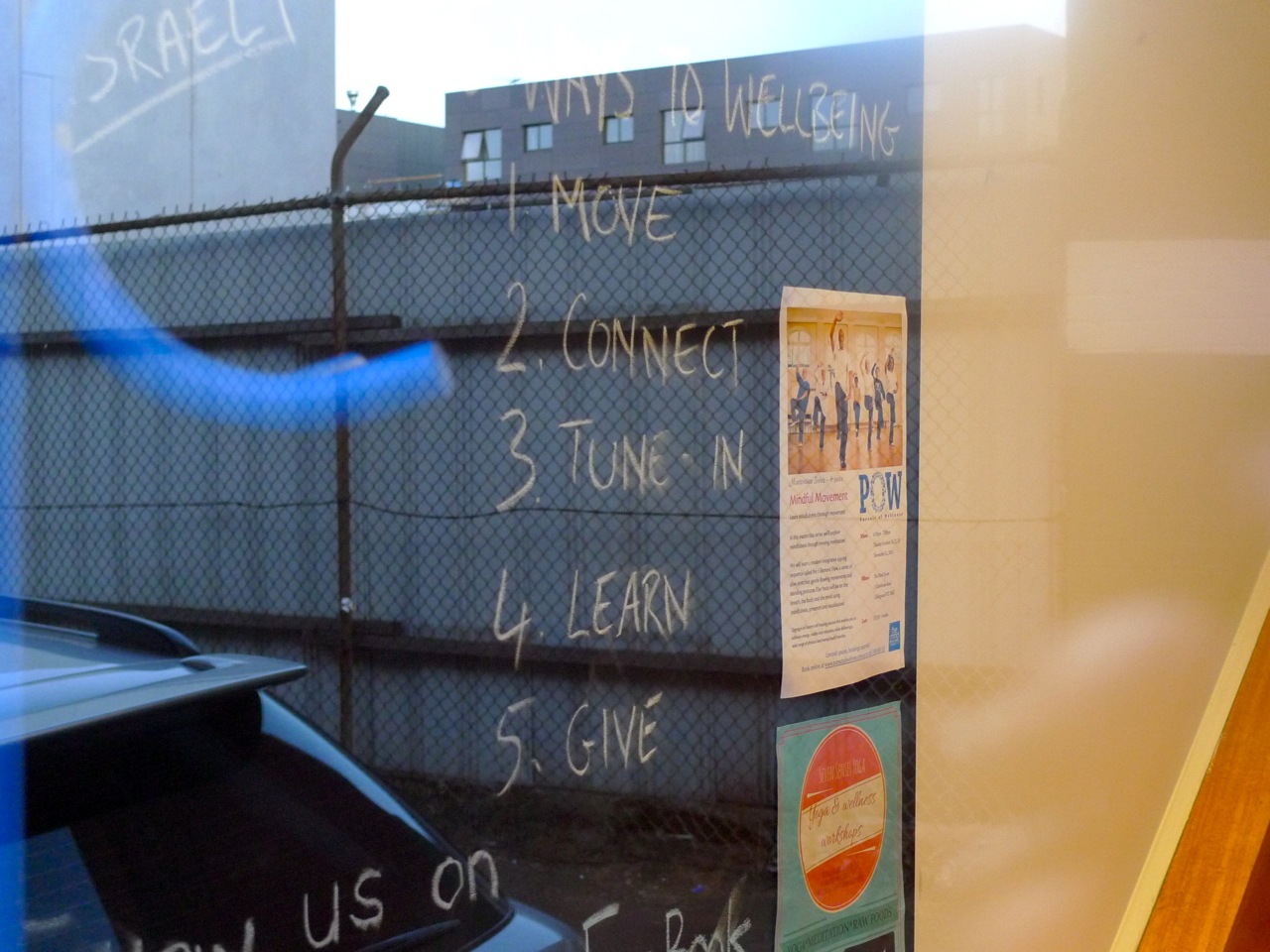 Fehily’s neighbours The Mind Room are trying to help urbane Melburnians feel even more content with their lives and I noticed 5 Ways to Wellbeing written on their window. They missed ‘Don’t keep abreast of what’s going down in the latest conflict zones’.