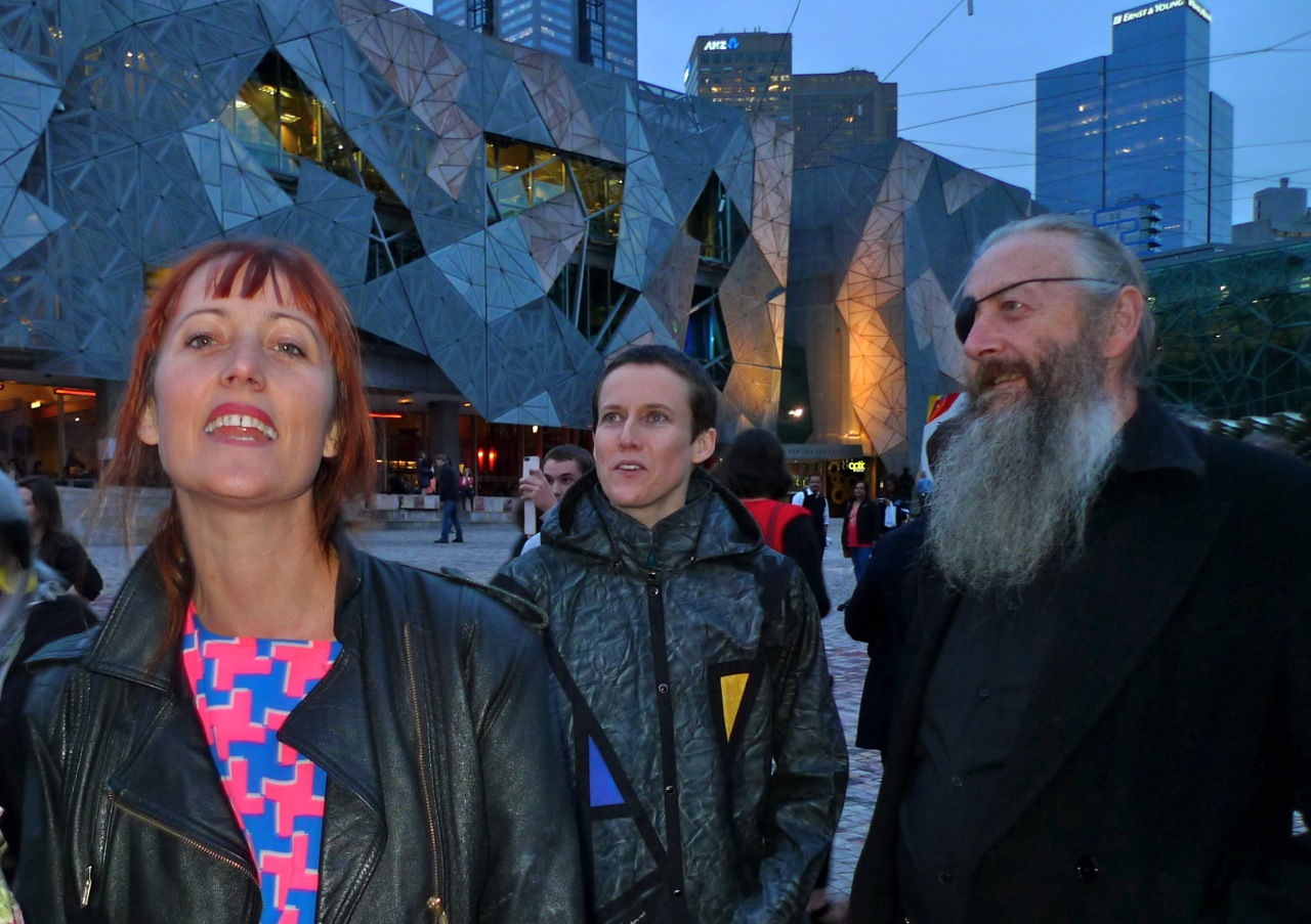 “On the very cutting edge of irrelevance to mainstream Australia”, said Aphids Artistic Director Willoh S Weiland, at a function to conclude a screen residency at Federation Square last week. Aphids also celebrated their 20th birthday. Aphids is an artist led cultural organization, making epic contemporary art projects, across art forms and borders. There’s video, endurance performance, collaboration with community groups aplenty and art popping up in unusual places like Deep Space or the Dromana Drive-In. And a big online footprint. There’s also a penchant for big questions and big revelations: