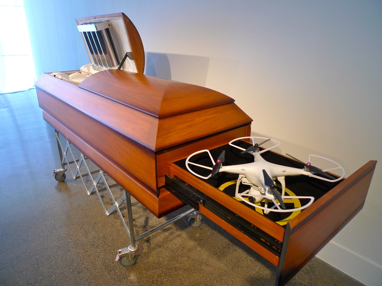 Don’t even get me started on IBM. When I’m not pre-menstrual, I know not to even go there sugah. Adam Kalkin (in collaboration with Aaron Ray-Crichton) has created a provocation that opens up critical discussion around the violent potential of design and the social and legal implications of the rise of technology. The Remote Controlled Terrorist Coffin (RCTC) is a magic box that houses the violent potential of design: